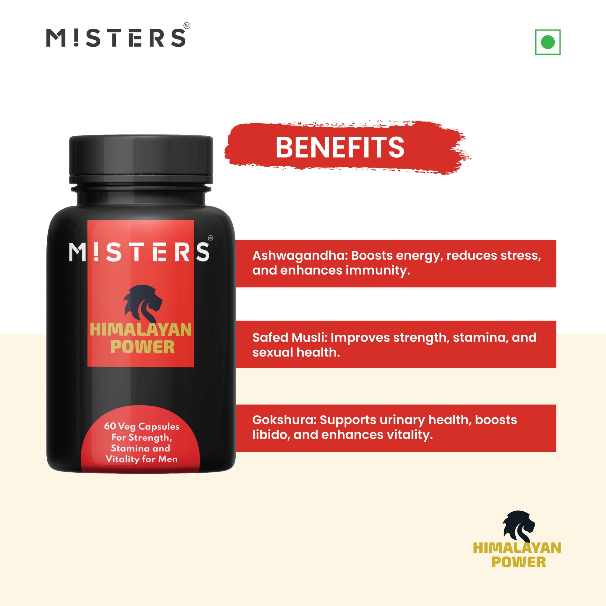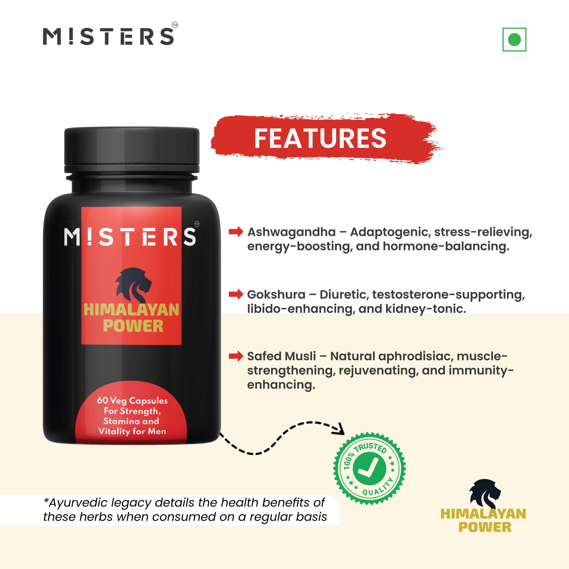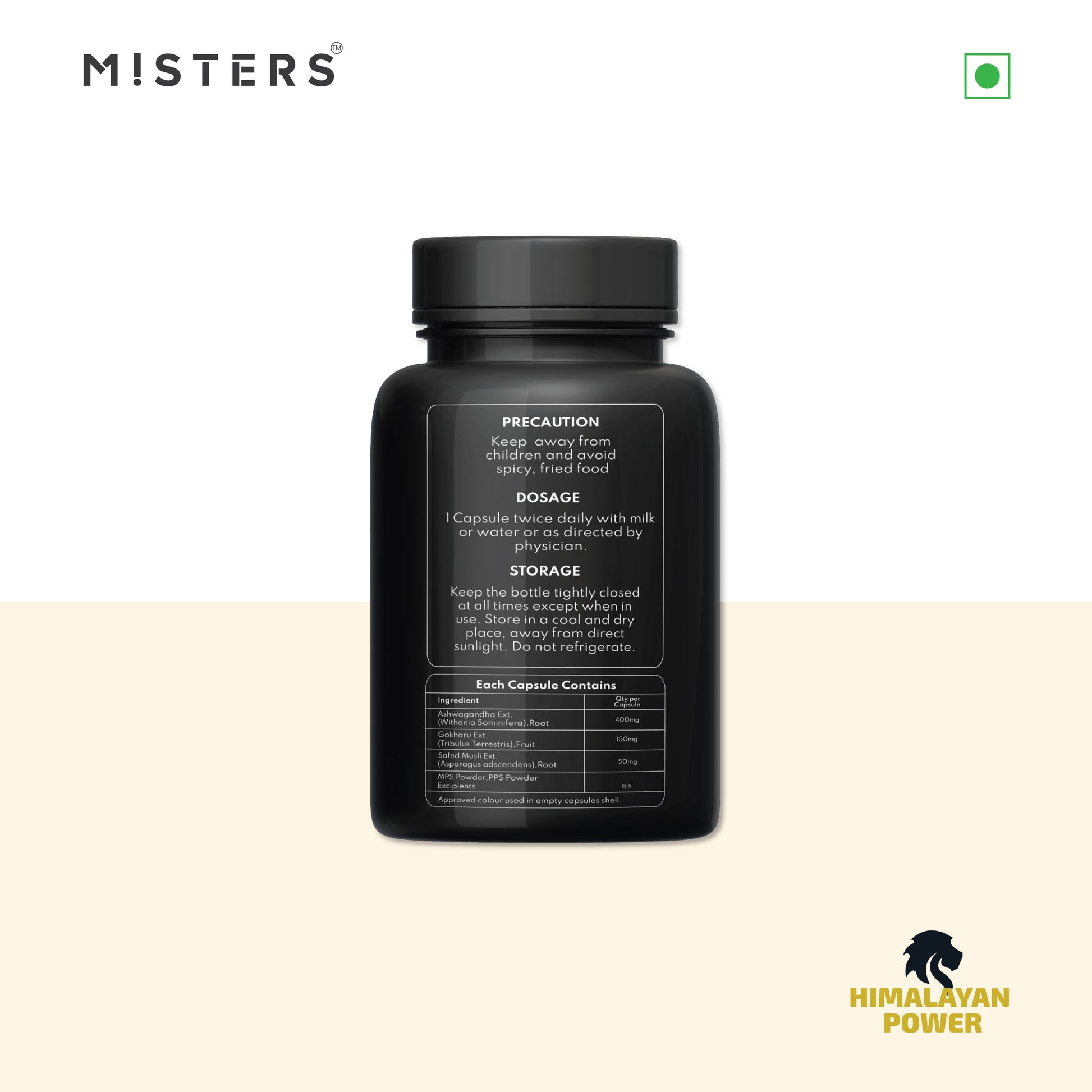60 Veg capsules of pure power from the Indian super herbs. Each capsule is packed with 400mg of Ashwagandha, 150 mg of Gokshura, and 50mg of Safed Musli. Just the right ratios to recharge you without any side effects.